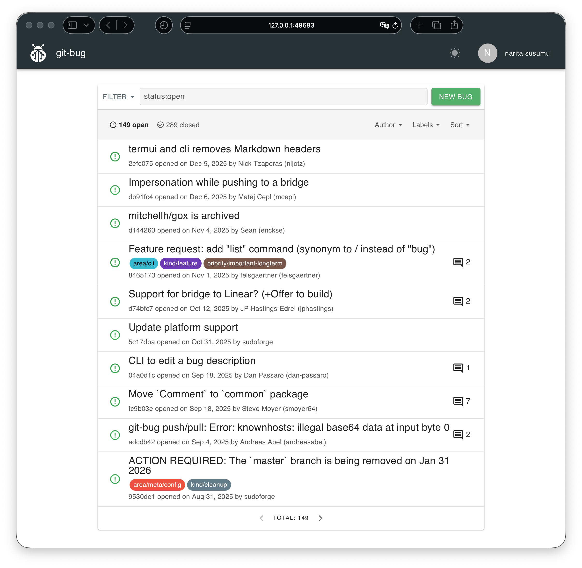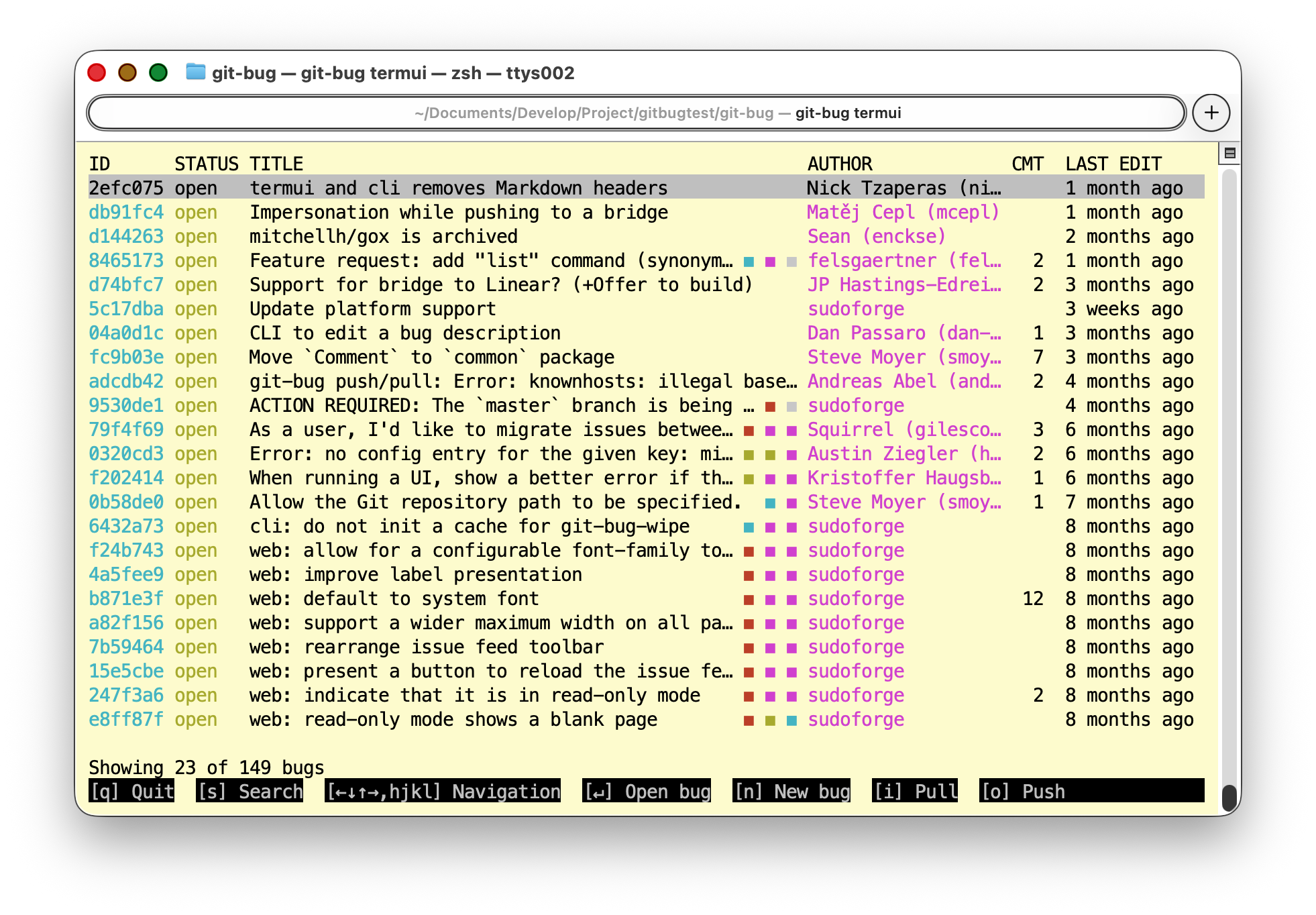 NOTE: バグトラッキングシステム git-bug を調べてみた(3)¶
